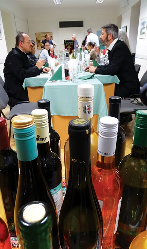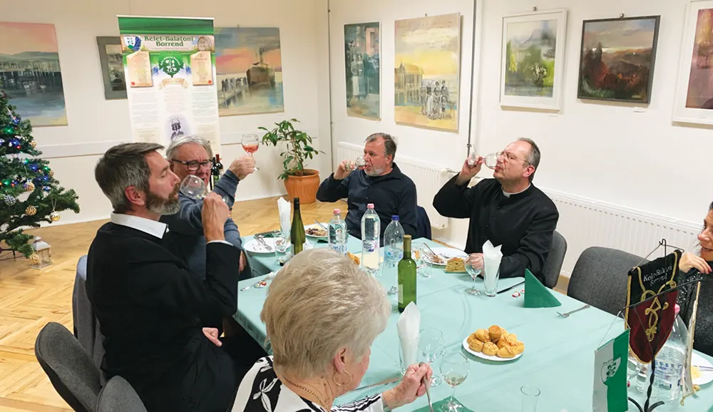 A komoly, ünnepélyes áldást követően a boráldás szép záróakkordja a közös együttlét, a szeretetvendégség volt. A vacsora, ami gyakran népi ételekből áll, a helyi közösség erejét hivatott mutatni, és lehetőséget ad a borlovagoknak, a gazdáknak, a hívőknek és a helyi vezetőknek a kötetlen beszélgetésre. Így volt ez nálunk idén is. Miklós atya és Németh Péter hosszas beszélgetésben ültek az asztalfőnél.
