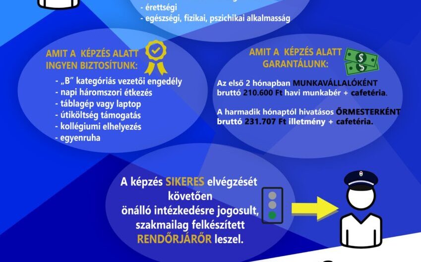A Veszprém Megyei Rendőr-főkapitányság pályázatot hirdet rendőrjárőr szakképesítést adó 10 hónapos, valamint 2 éves technikumi rendőr szakképzésre, Veszprém megyei állományába.…