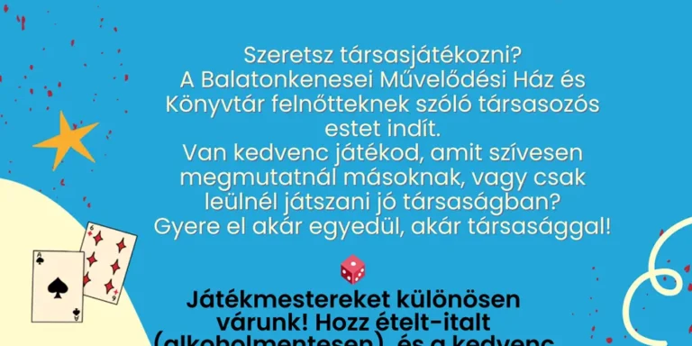 Március 6. 17 óra – Kultúra háza – ingyenes program Társas est – Izgalmas társasjáték partira várunk minden érdeklődőket, fiatalokat és régebb óta fiatalokat, játékmestereket és játékosokat! Ismét egy jó…