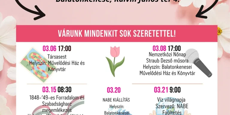 Márciusi programajánló – Az első tavaszi hónap, március is sokféle programot kínál. Várunk minden érdeklődőt a közösségi eseményekre!