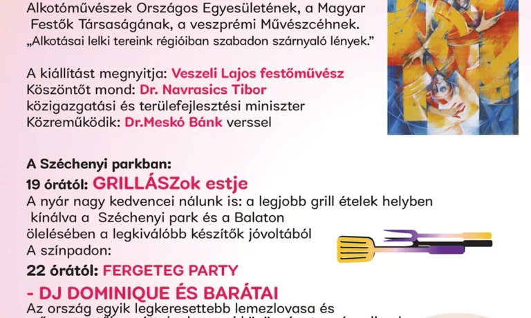 Folytatódik a Balatoni ÁSZok gasztrokulturális rendezvénysorozat: július 18-án a kora esti órákban a Kultúra Házában a képzőművészet gyönyörködteti a látogatókat Baky Péter festőművész alkotásain keresztül, pedig este a Széchenyi parkban…