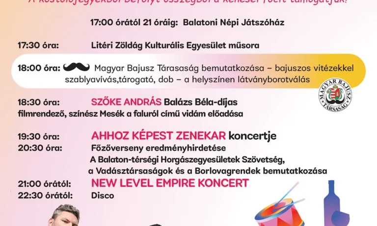 A Balatoni ÁSZok harmadik napján a Vadászok-Horgászok-Borászok Napja következik július 19-én. 16 órától a főzőcsapatoké a főszerep, halételeket készítenek, majd pedig színpadi programok következnek, köztük a Magyar Bajusz Társaság tagjai,…