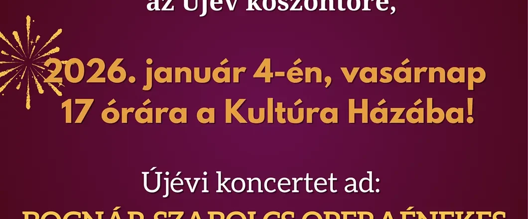 Operaáriák színesítik 2026. első közösségi összejövetelét, az ÚJÉvKöszöntőt! Koccintsunk együtt az új évre! 2026. január 4. vasárnap 17 óra Helyszín: Kultúra Háza ingyenes rendezvény