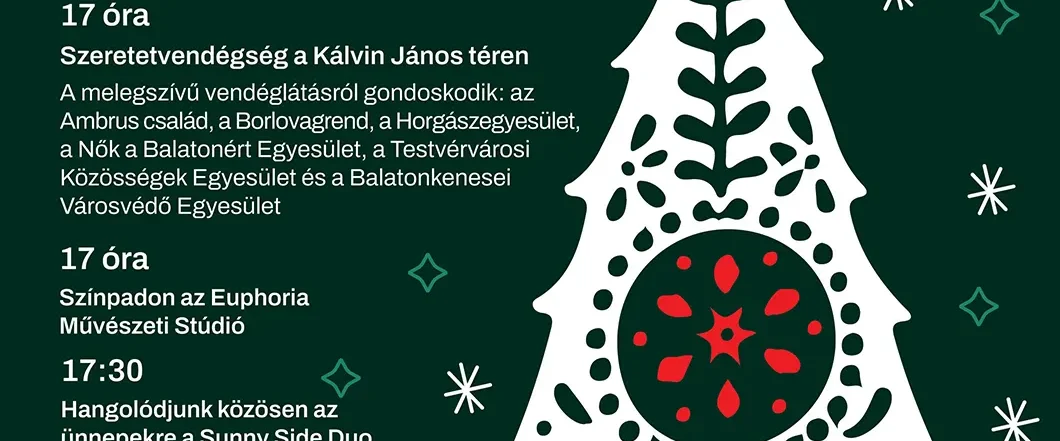 A város legnagyobb, leghangulatosabb programjával idén is várjuk a helyi lakosokat és vendégeiket. 2025. december 20. szombat 16 óra Helyszín: Református templom és Kultúra Háza előtti tér ingyenes