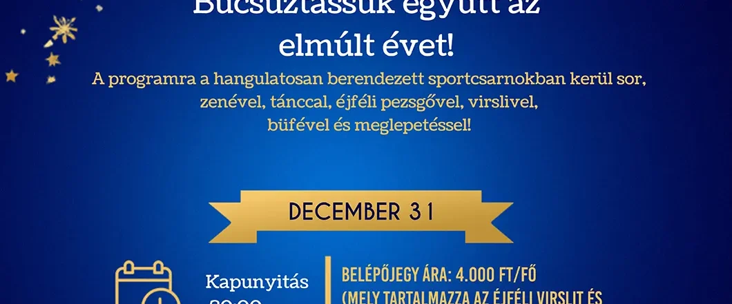 Töltsük együtt az év utolsó estéjét és köszöntsük együtt az új évet éjfélkor! 2025. december 31. 19 óra Helyszín: Sportcsarnok Belépőjegyes, infók a plakáton!