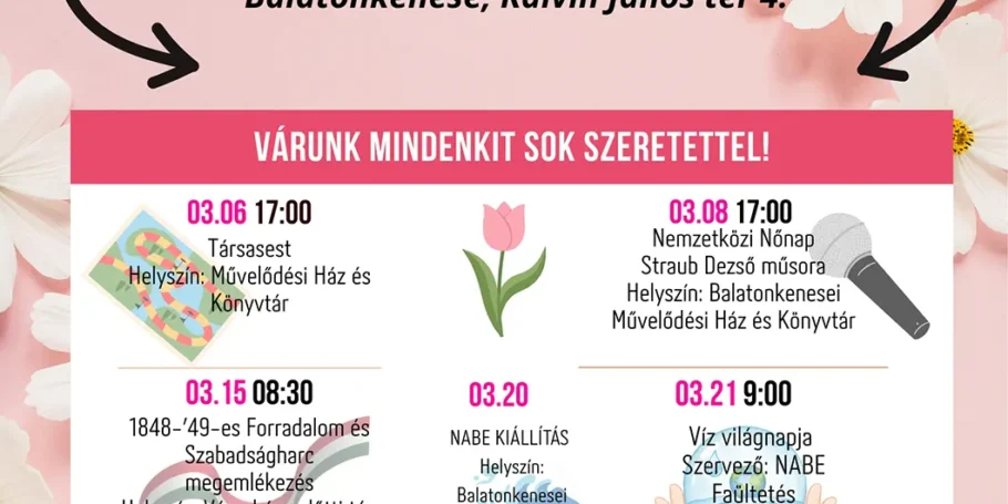 Márciusi programajánló – Az első tavaszi hónap, március is sokféle programot kínál. Várunk minden érdeklődőt a közösségi eseményekre!