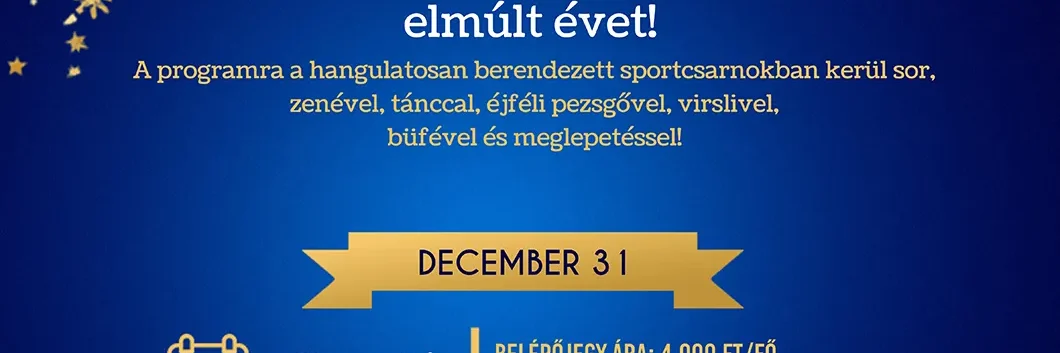 Töltsük együtt az év utolsó estéjét és köszöntsük együtt az új évet éjfélkor! 2025. december 31. 19 óra Helyszín: Sportcsarnok Belépőjegyes, infók a plakáton!