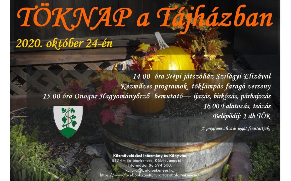 2020. október 24-én, szombaton 14 órától várjuk mindazokat, akik Velünk szeretnének szórakozni a Töknapon! Belépődíj 1 db tök!