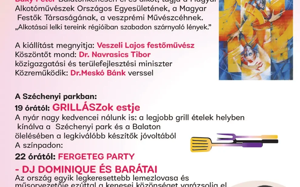 Folytatódik a Balatoni ÁSZok gasztrokulturális rendezvénysorozat: július 18-án a kora esti órákban a Kultúra Házában a képzőművészet gyönyörködteti a látogatókat…