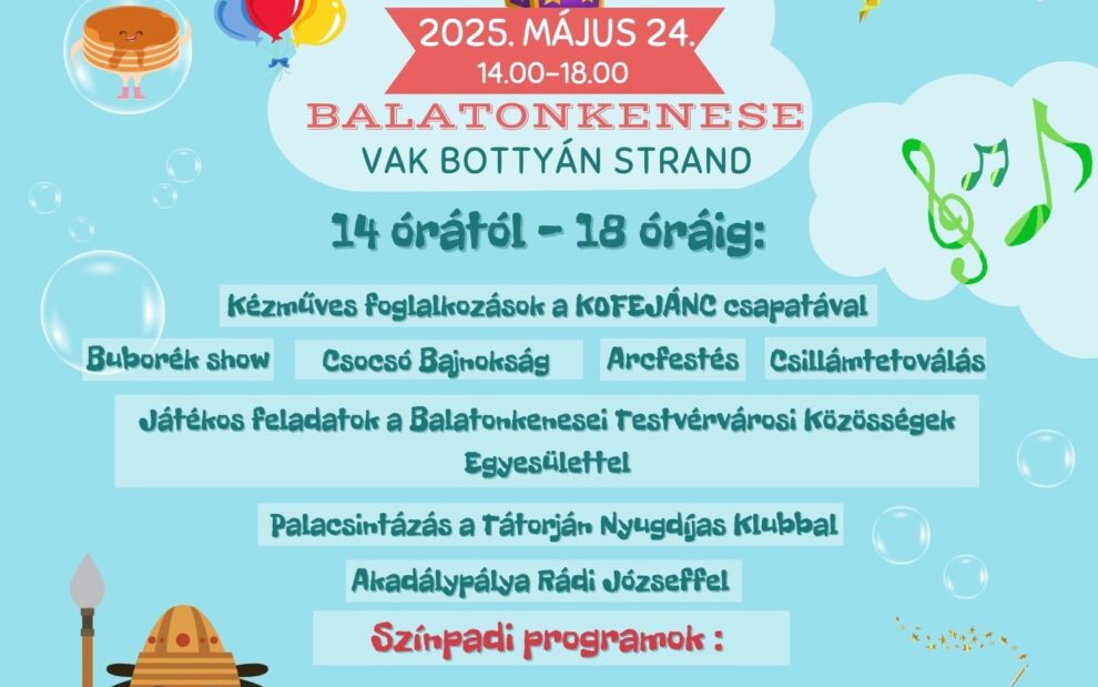 Idén május 24-én, szombaton kerül sor a Gyermeknapi programra. Sok-sok móka, kacagás, színpadi szereplők, gyermekzenekar – és minden, ami biztosítja…