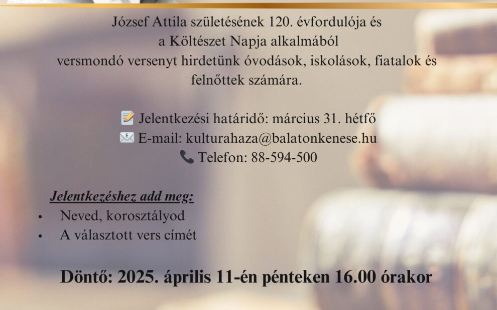 Mintegy 30 jelentkezőnk van a versmondó versenyre. A díjátadót követőn pedig Kései sirató címmel hallhatnak a résztvevők irodalmi műsort.