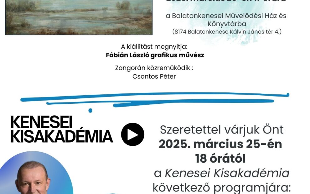 Elindítjuk a KENESEI KISAKADÉMIÁT! A sok-sok érdekes témát és kiváló előadókat felvonultató sorozatot a téli-tavaszi és őszi időszakra tervezzük. Első…