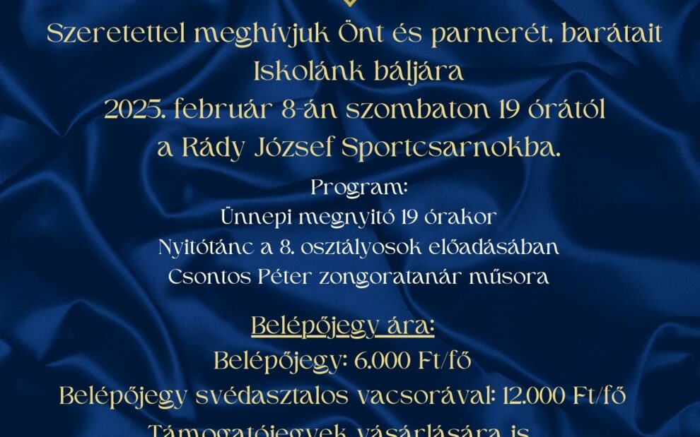 Szeretettel várunk Mindenkit február 8-án a Balatonkenesei Pilinszky János Általános Iskola jótékonysági báljára. Jelentkezni az alábbi Google Forms linken lehet:…