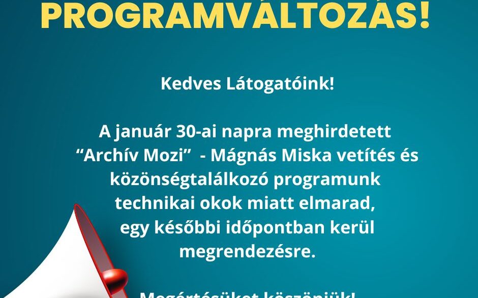 A 2025. január 30-ai napra meghirdetett „Archív Mozi” – Mágnás Miska filmvetítés és közönségtalálkozó technikai okok miatt elmarad, egy későbbi…