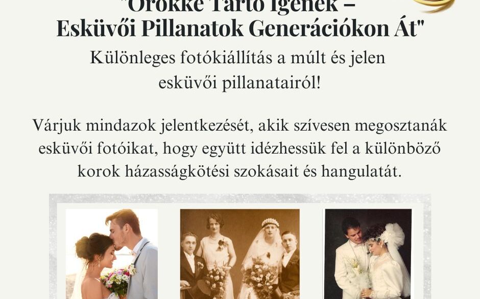 Egy különleges fotókiállítást szeretnénk szervezni, amelyben a múlt és jelen esküvői pillanatait szeretnénk bemutatni. Várjuk mindazok jelentkezését, akik szívesen megosztanák…