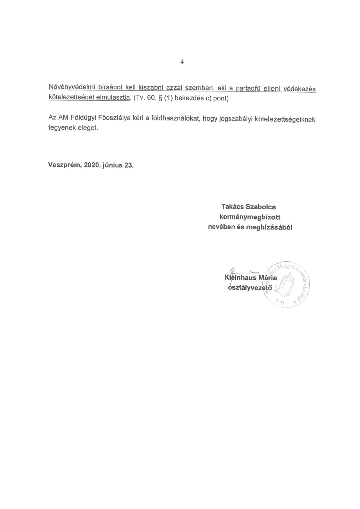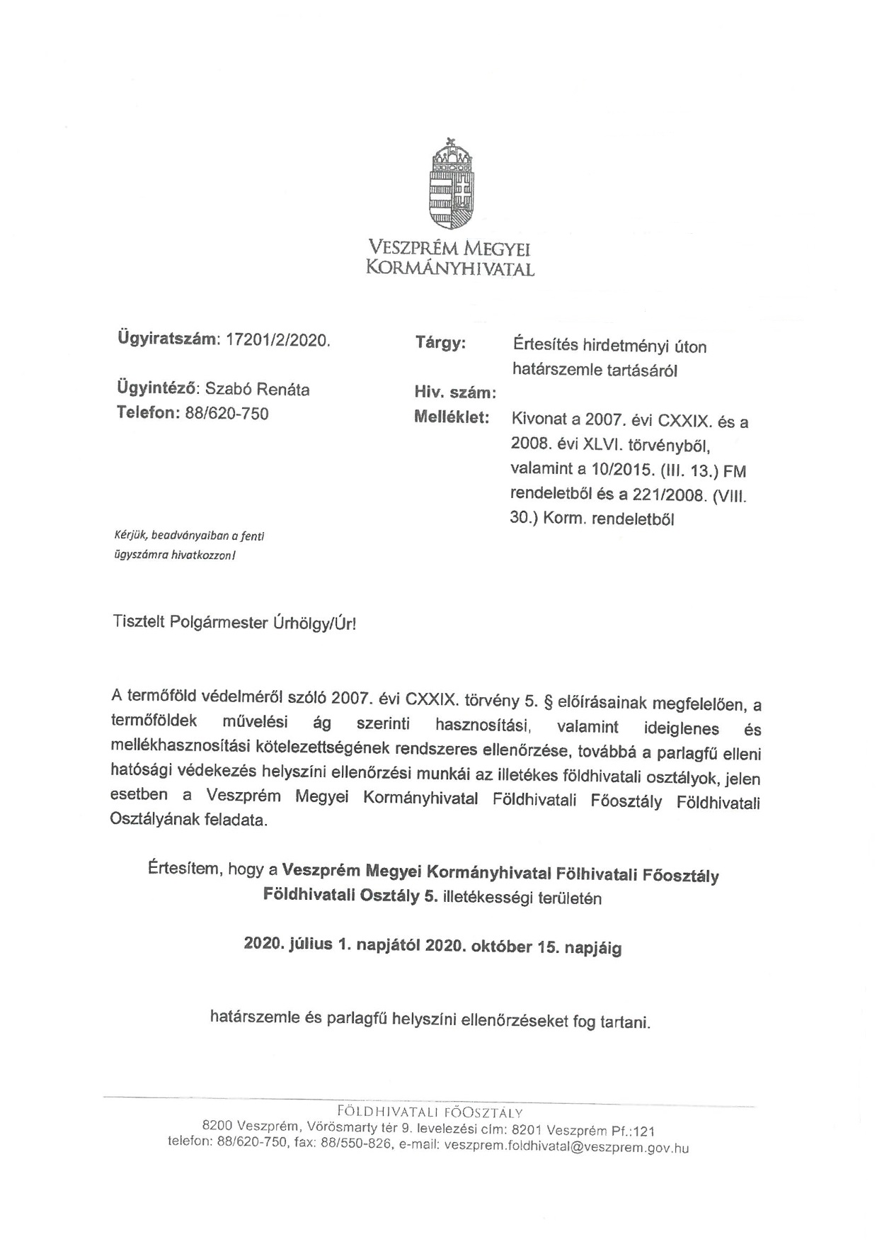 Határszemlét és parlagfű helyszíni ellenőrzést tart a kormányhivatal