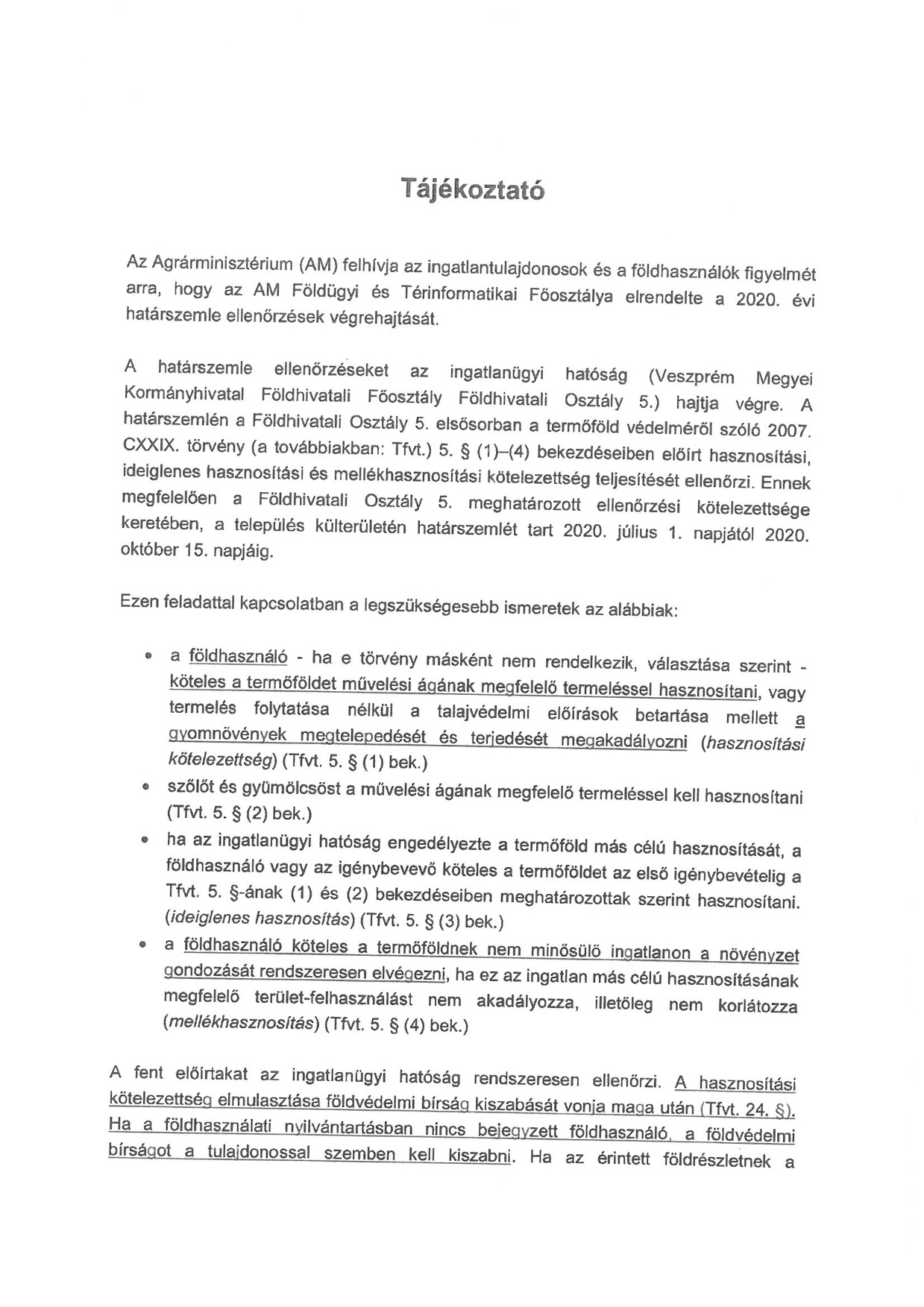 Balatonkenesén is határszemle és parlagfű helyszíni ellenőrzéseket tart a Veszprém Megyei Kormányhivatal 2020. július 1. és október 15. között. A határszemle ellenőrzéseket az ingatlanügyi hatóság hajtja végre, és elsősorban a termőföld védelméről szóló törvény erre vonatkozó részében előírt kötelezettségek teljesítését, továbbá külterületeken a parlagfű elleni védekezést ellenőrzi. Az ellenőrzéseket elrendelő Agrárminisztérium Földügyi Főosztálya kéri a földhasználókat, hogy jogszabályi kötelezettségeiknek tegyenek eleget.