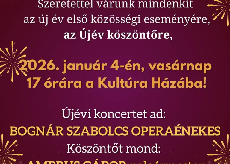 Operaáriák színesítik 2026. első közösségi összejövetelét, az ÚJÉvKöszöntőt! Koccintsunk együtt az új évre! 2026. január 4. vasárnap 17 óra Helyszín: Kultúra Háza ingyenes rendezvény