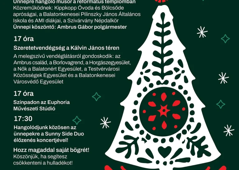 A város legnagyobb, leghangulatosabb programjával idén is várjuk a helyi lakosokat és vendégeiket. 2025. december 20. szombat 16 óra Helyszín: Református templom és Kultúra Háza előtti tér ingyenes