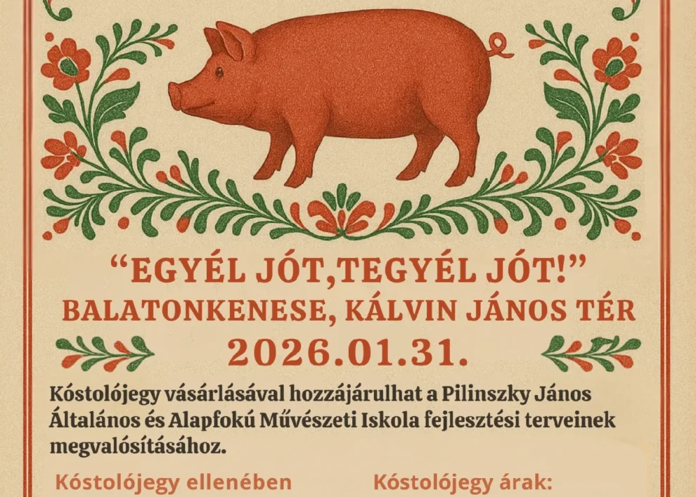 Ismét megrendezzük a hagyományos disznóvágást a Kultúra Háza előtti téren a Balatonkenesei Városvédő Egyesülettel közreműködve. A program jótékony célt szolgál, tehát a finom falatok megvásárlásával segítünk is! Várunk mindenkit szeretettel!