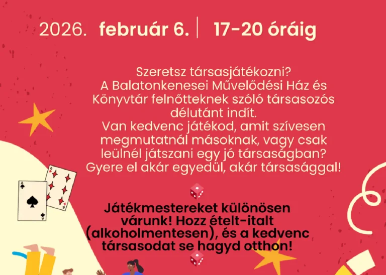 Kocka, kóla, kikapcs…Társasjátékozni még a felnőttek is szeretnek! Várunk február 6-án délután, ha vágysz egy kis közösségre és szívesen játszol együtt másokkal!