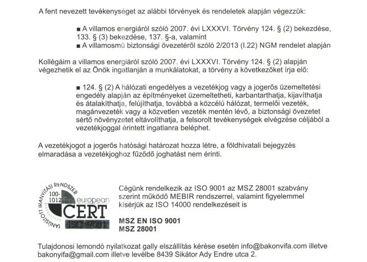 Ez úton szeretnénk tájékoztatni, hogy a villamos hálózatok gallyazására élet és vagyonvédelmi okokból van szükség, mint az EON Áramhálózati Zrt, mint a fogyasztók érdekében. Letölthető dokumentum: Tulajdonosi ertesito
