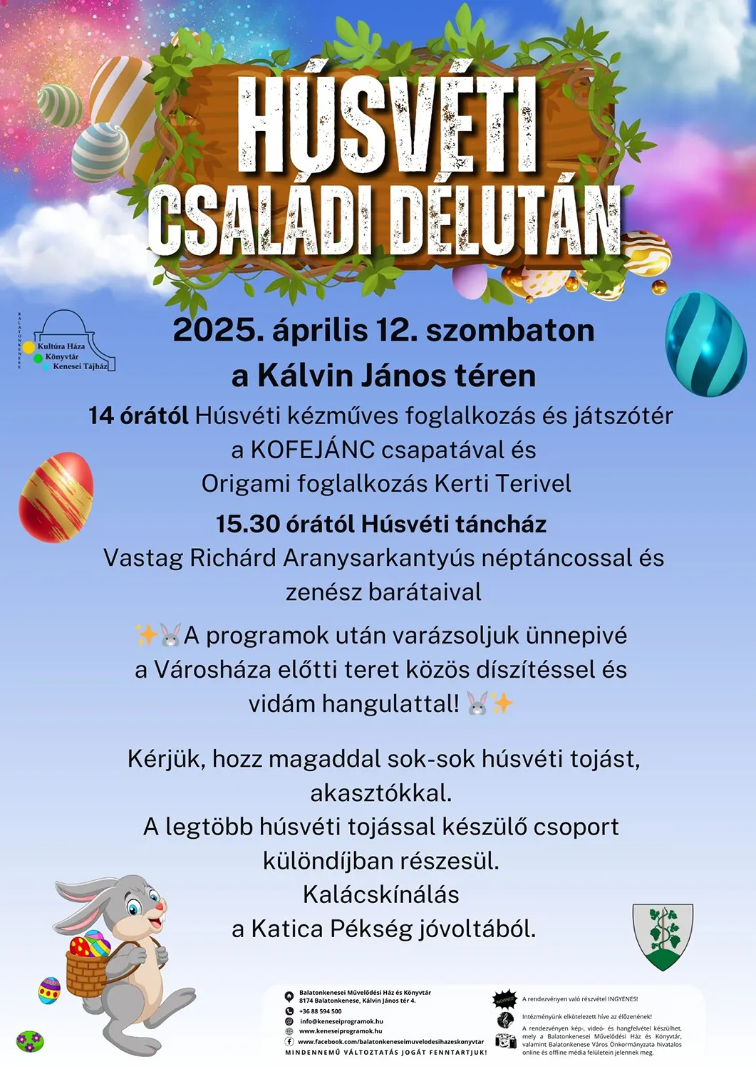 Szeretettel várunk Mindenkit április 12-én szombaton 14 órától Húsvéti Családi Délután programunkra.