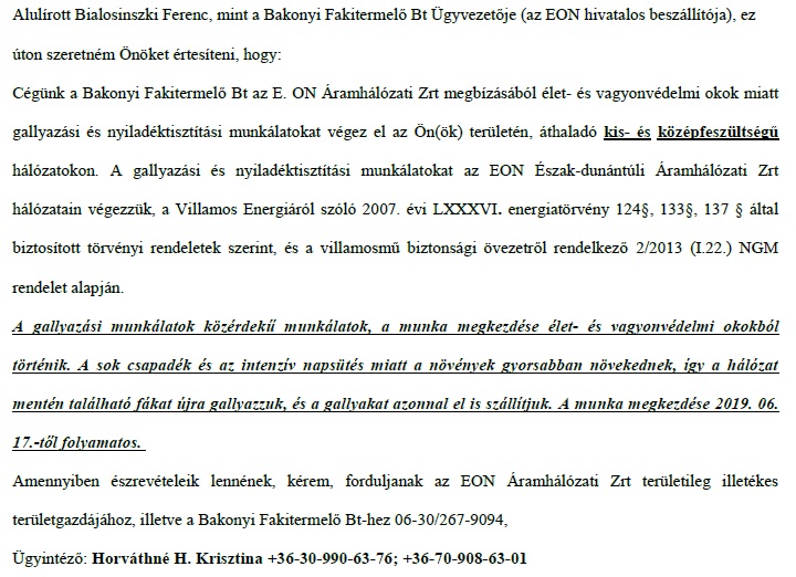 Tisztelt Balatonkenesei Lakosok! 2019.június 17-től a városban a villamos vezetékek körül gallyazást végeznek. A munkálatok járhatnak némi kellemetlenséggel, megértésüket és türelmüket köszönjük!