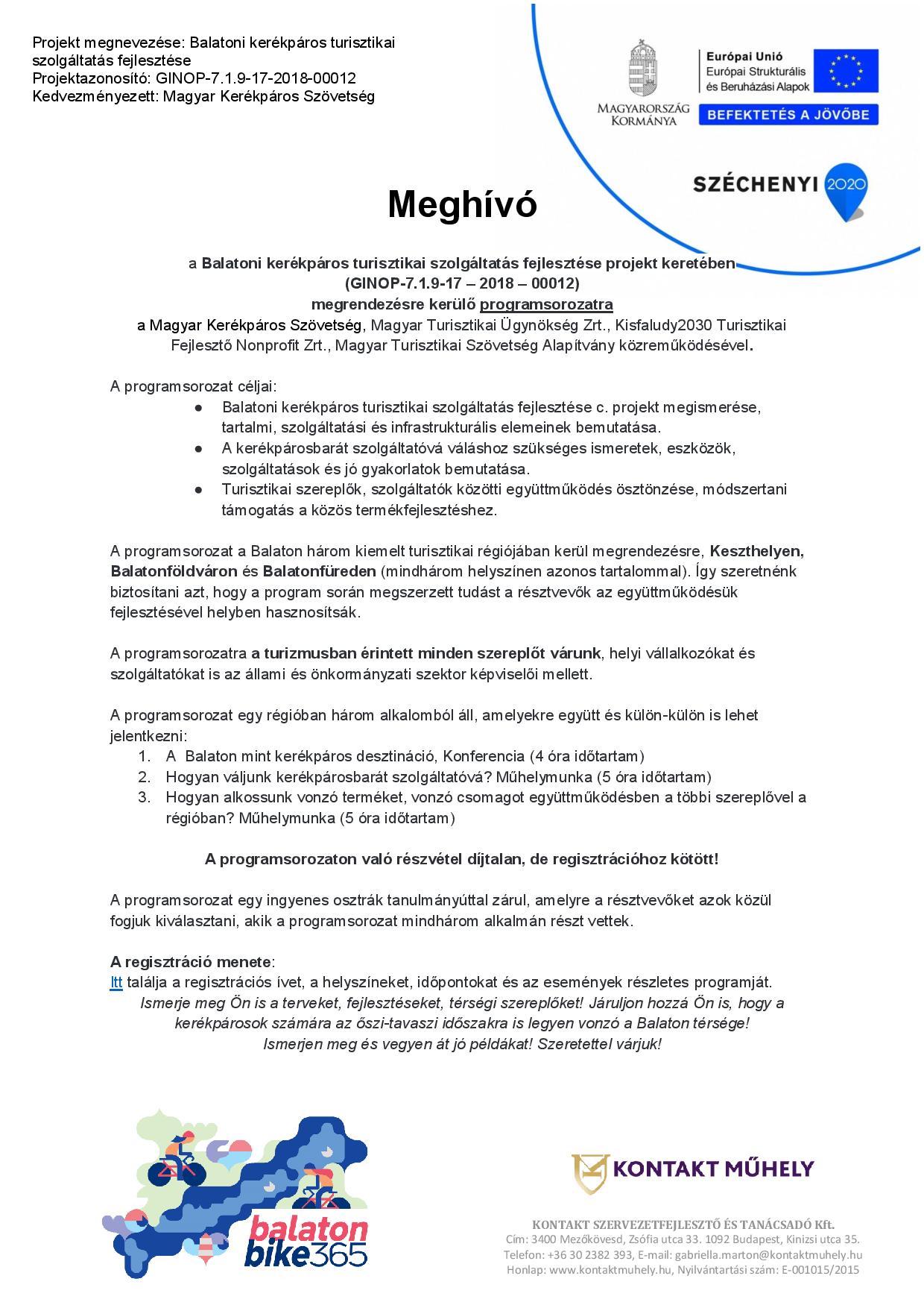 A Magyar Kerékpáros Szövetség, a Magyar Turisztikai Ügynökség Zrt., a Kisfaludy 2030 Turisztikai Fejlesztő Nonprofit Zrt., a Magyar Turisztikai Szövetség Alapítvány közreműködésével programsorozatot szervez azzal a céllal, hogy a gyakorlatban is bemutassa a kerékpáros barát szolgáltatóvá váláshoz szükséges ismereteket, eszközöket, szolgáltatásokat, illetve hogy a turizmus szereplőit együttműködésre ösztönözze és módszertani támogatást nyújtson a közös termékfejlesztéshez.