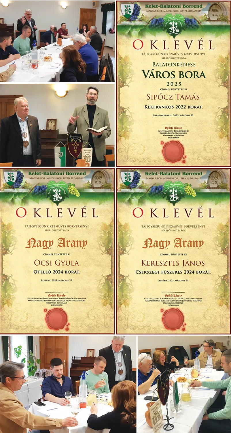 Balatonkenese város bora ebben az évben Sipőcz Tamás 2022-es kékfrankosa lett. A kitüntető cím mellett két nagy arany minősítést is kiosztott a bizottság: a fehérborok kategóriájában az elismerést Keresztes János 2024-es cserszegi fűszerese nyerte, míg a vörösborok közül Öcsi Gyula 2024-es otellója érdemelte ki az elismerést. – A kenesei borosgazdák között ezüst fokozatot kapott Orbán Imréné 2024-es vörös cuvée-je és Öcsi Gyula tavalyi vegyes fehérbora. Polgárdi Károly 2024-es olaszrizlingje és Orbán Imréné 2024-es vegyes fehérje pedig bronzminősítést ért el.