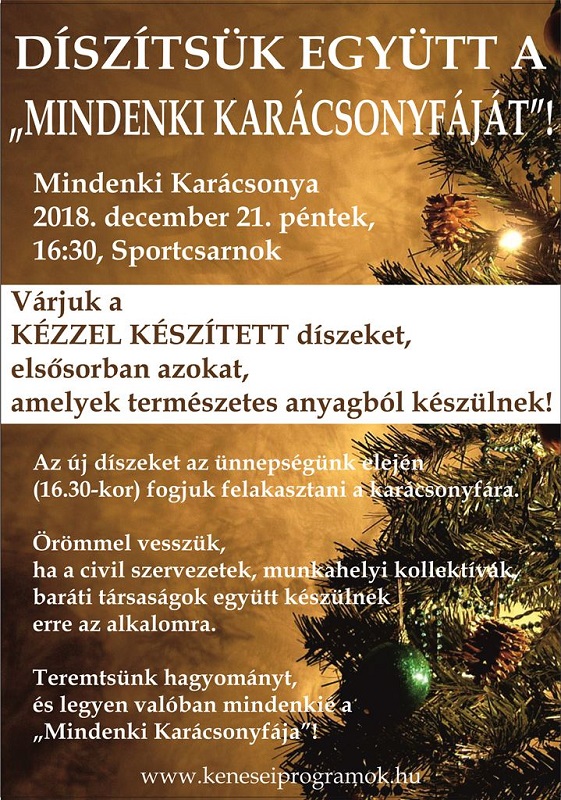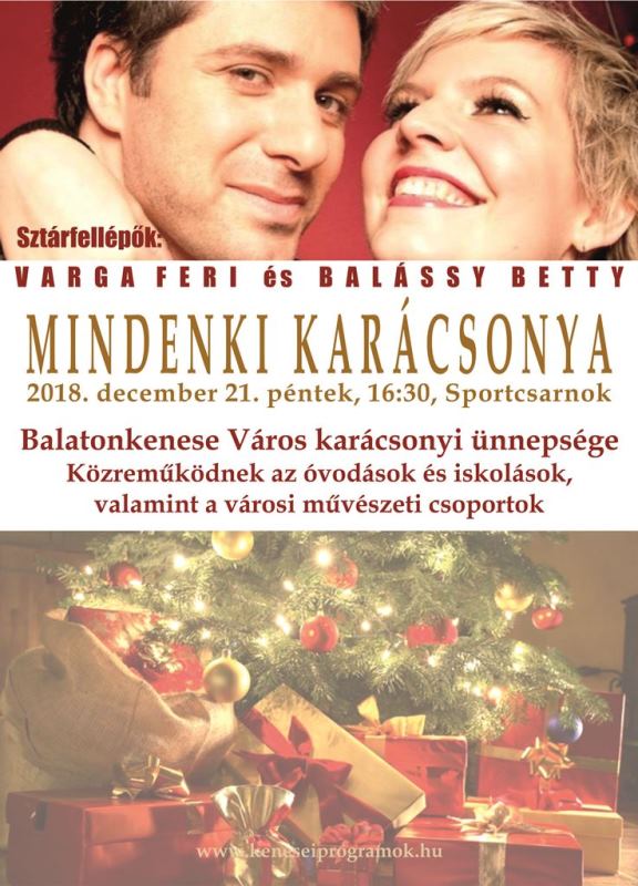 Szeretettel várjuk Önöket 2021. december 18-án 16 órától a Kultúra Házához a Mindenki Karácsonya rendezvényünkre. A műsorban közreműködnek: a Kippkopp Óvoda és Bölcsőde Aprófalva csoportja, a Pilinszky János Általános Iskola és AMI diákjai, a Szivárvány Népdalkör, Kerti Teréz. Ünnepi beszédet mond: Jurcsó János Balatonkenese Város polgármestere. Támogatóink és együttműködő partnereink jóvoltából szeretetvendégséggel kedveskedünk az érdeklődőknek. Találkozzunk szombaton!