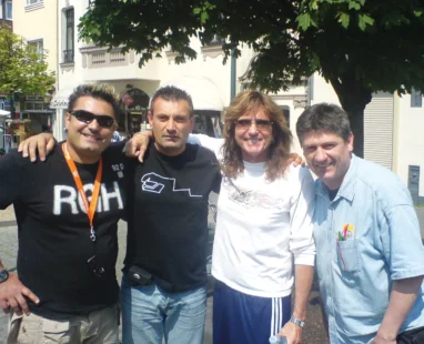 – Talán a legemlékezetesebb az volt, amikor 1996 augusztusában a Népstadionban Tina Turner előzenekara voltunk. Sajnos azonban, a művésznő közelébe sem engedtek bennünket, szóval vele nem találkoztunk. Viszont egy nagy ikonomat, David Coverdale-t sikerült elkapnom Düsseldorfban, az utcán, és közös fotó is készült vele. Coverdale, aki a Whitesnake és a Deep Purple énekese is volt, fantasztikus muzsikus, jómagam nagyon szeretem az összes munkáját. Egyébként nagyon szimpatikus volt, örömmel és készségesen odaállt egy közös fotóra, ott az utcán. Számomra ő a legnagyobb sztár, akivel személyesen találkozni tudtam.