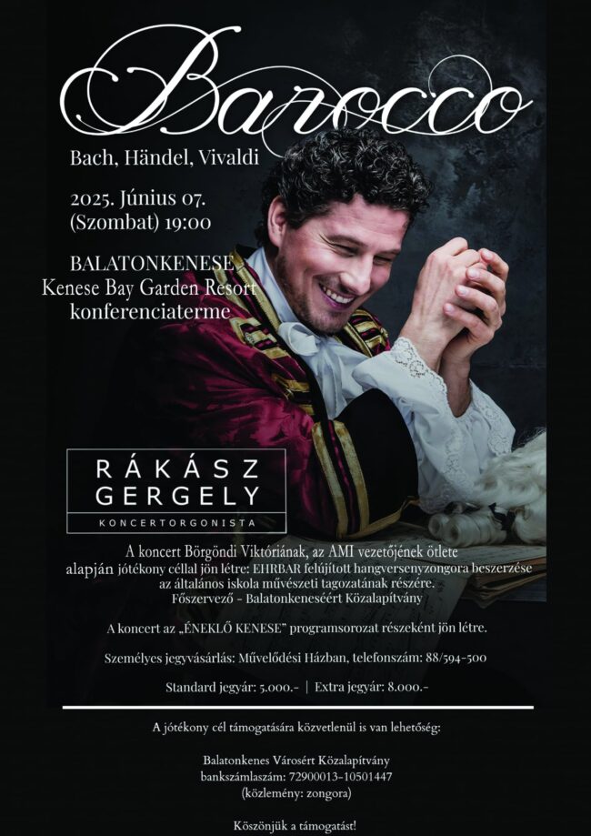 Barocco – Rákász Gergely koncertorgonista Balatonkenesén 2025. június 7-én Rákász Gergely koncertorgonista 2025. június 7-én, szombaton 19:00 órától lép fel Balatonkenesén, a Kenese Bay Garden Resort konferenciatermében (Parti sétány 51.).…