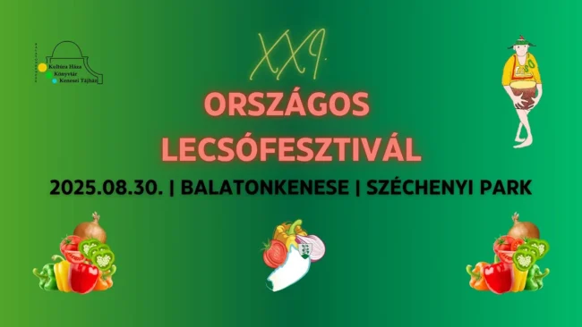 Készülj, mert jön a XXI. ORSZÁGOS LECSÓFESZTIVÁL! A dátum: augusztus 30. szombat Idén már 21. alkalommal rotyog a lecsó Balatonkenesén! Jöhetsz főzni, kóstolni, nevetni – és persze élvezni a hamisítatlan…