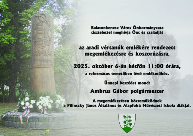 Szeretettel hívjuk az emlékezőket október 6-án 11 órára a református templomban lévő kopjafánál történő megemlékezésre.
