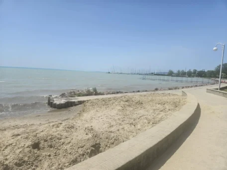 A strand melletti pavilonsor számos vendéglátó és kereskedelmi egységgel várja a felfrissülni vágyókat.