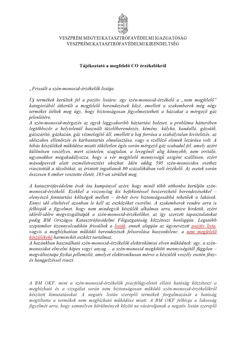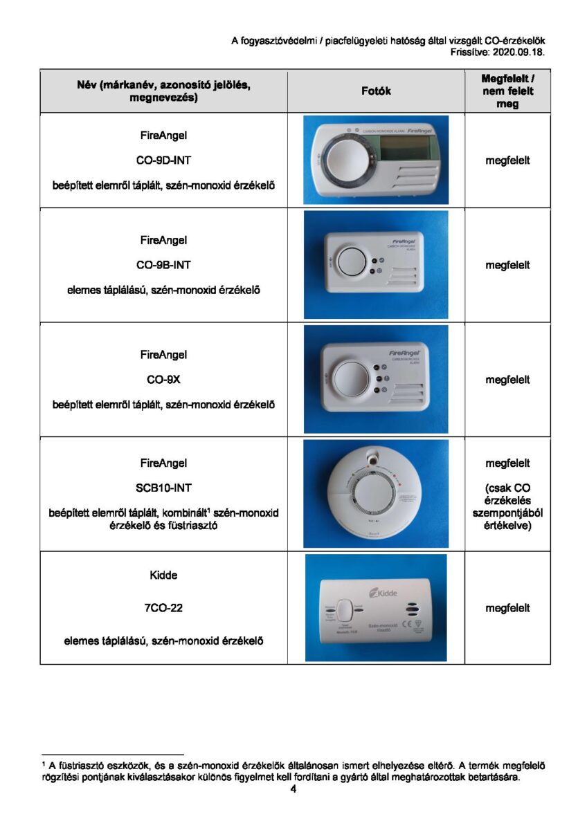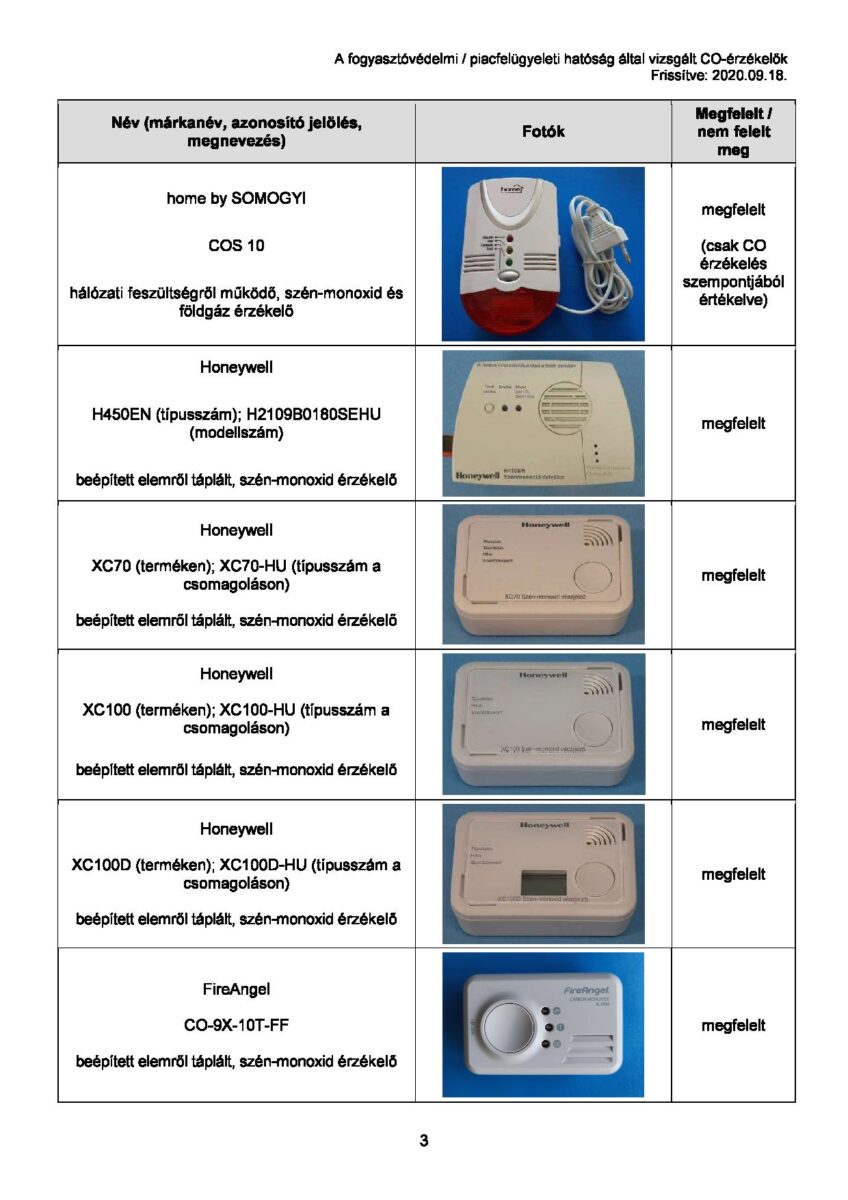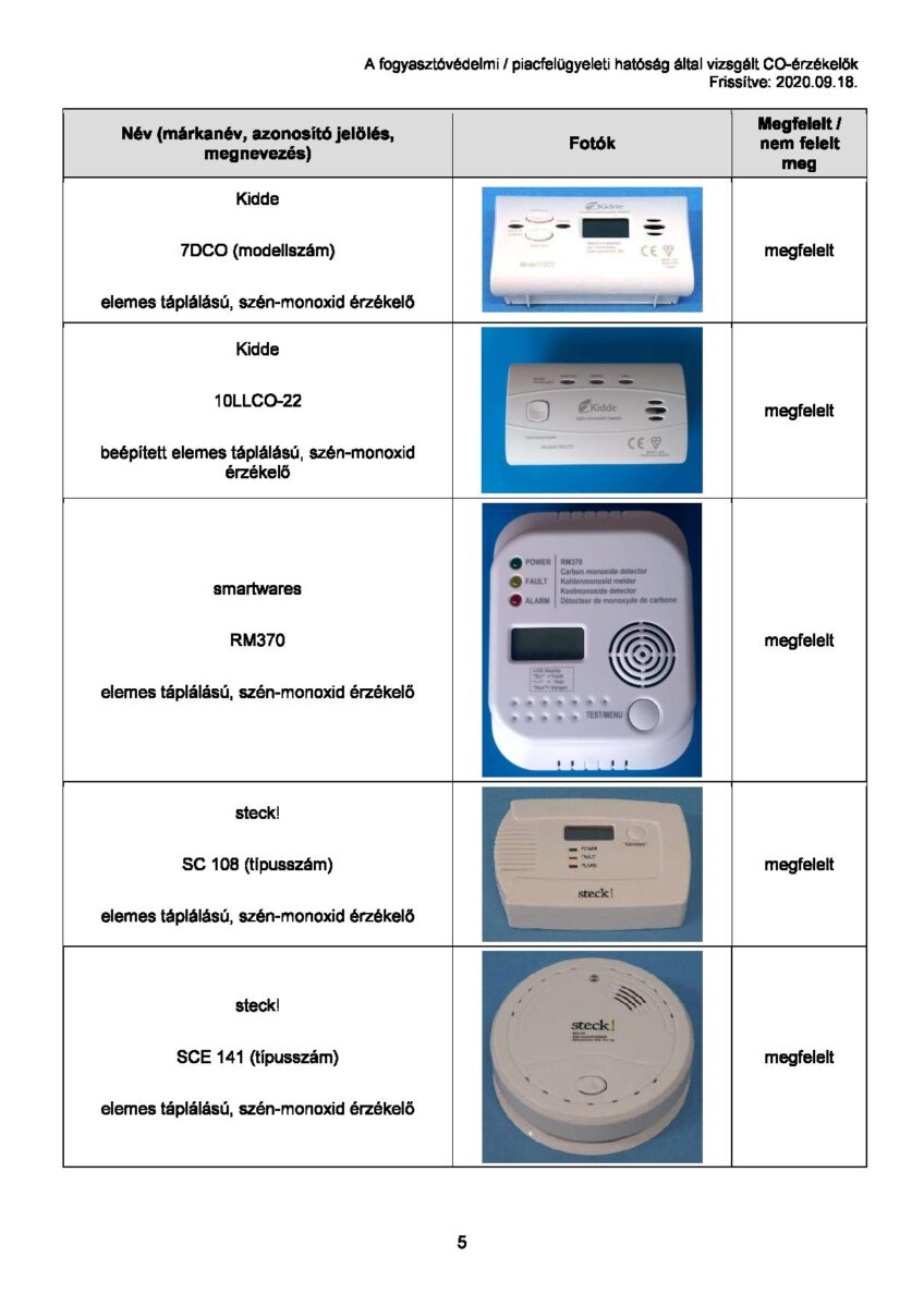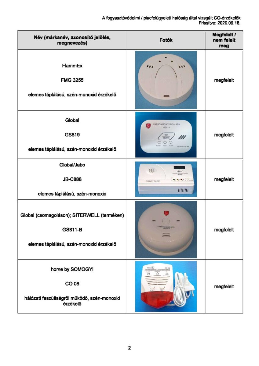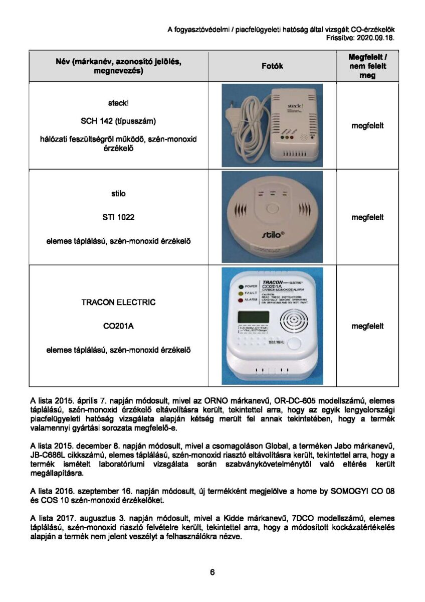 A csatolt listán találhatók azok a CO-érzékelő műszerek, melyek megfelelően, megbízhatóan működnek és figyelmeztetik a háziakat a mérgező gáz jelenlétére.