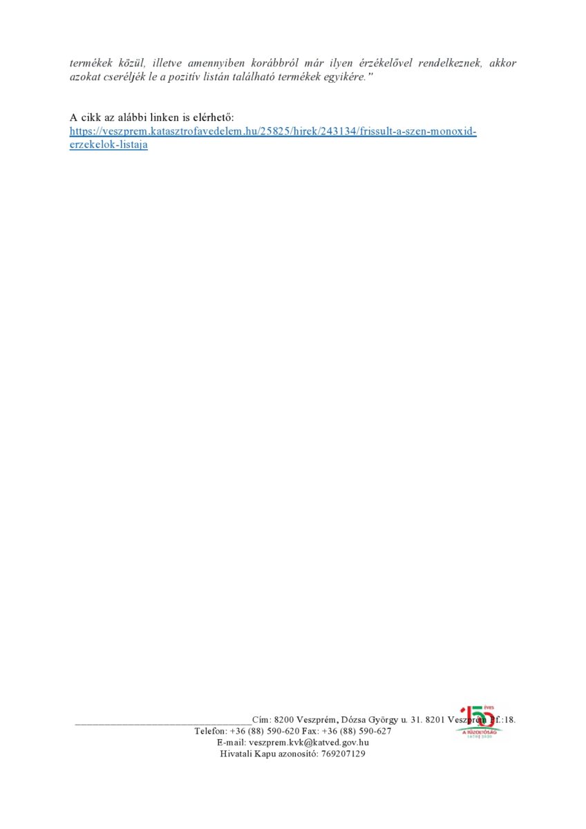 A Veszprém Megyei Katasztrófavédelmi Igazgatóság tájékoztatja a Tisztelt Lakosságot a CO-érzékelők megbízhatóságáról.