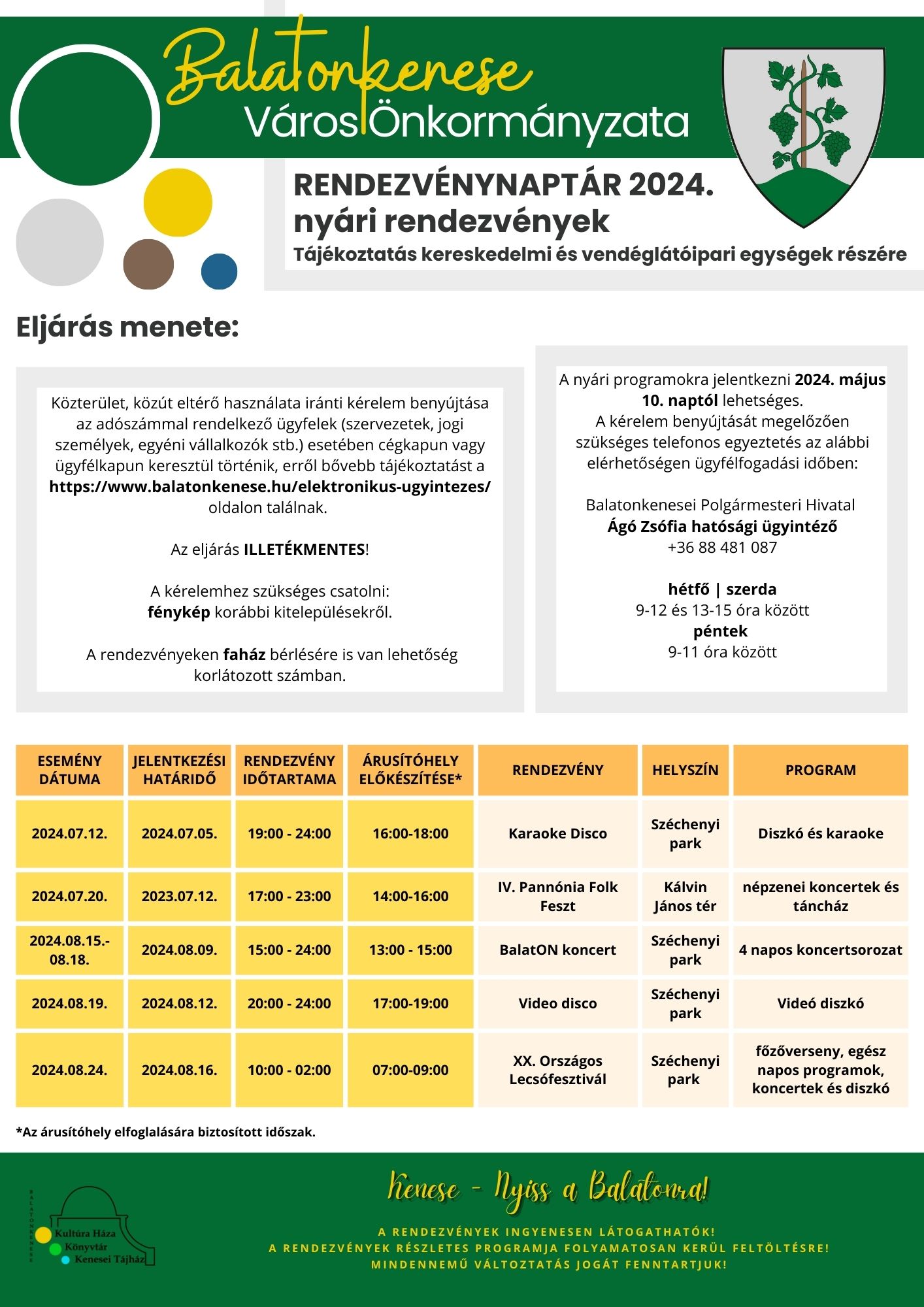 Termelőket, alkotókat, kereskedőket, árusokat, vendéglátósokat várunk a Balatonkenesei Művelődési Ház és Könyvtár rendezvényeire!