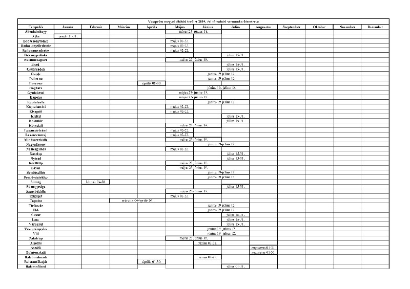 Tájékoztatjuk a Tisztelt Lakosságot, hogy a kéményseprőipari tevékenységről szóló 2015. évi CCXI. törvényben, valamint a kéményseprőipari tevékenység ellátásának szakmai szabályairól szóló 21/2016. (IV.9.) BM rendeletben (a továbbiakban: BM rendelet) meghatározott közfeladat elvégzése érdekében a BM Országos Katasztrófavédelmi Főigazgatóság Gazdasági Ellátó Központ, mint kéményseprőipari szerv a 2019. évi kéményseprőipari sormunka ütemterveit megyei bontásban elkészítette. A részletesebb információ a http://kemenysepres.katasztrofavedelem.hu/tevekenysegek/sormunka weboldalon olvasható.
