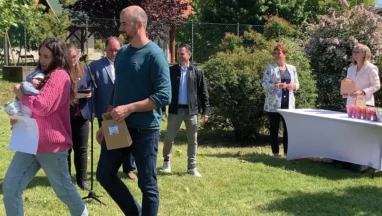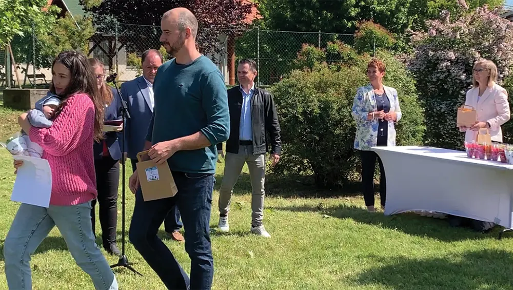 – A mai alkalomra készülve hoztam magammal valamit: azt a kis ajándékot, amelyet mi vehettünk át néhány éve – mondta Ambrus Gábor polgármester. – Szülőként 2016-ban és 2018-ban magam is részese voltam ennek az ünnepnek, s a kisfiam a mai napig együtt alszik az ajándék nyuszival, amit akkor kaptunk: az ágya leltárának elválaszthatatlan része, nagyon kedves emlék.