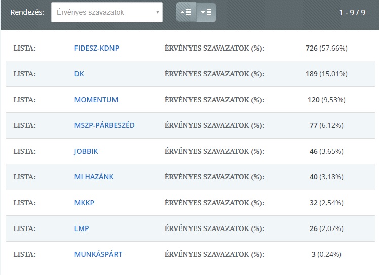 Az alábbi táblázat a www.valasztas.hu-n így mutatja az eredményeket: